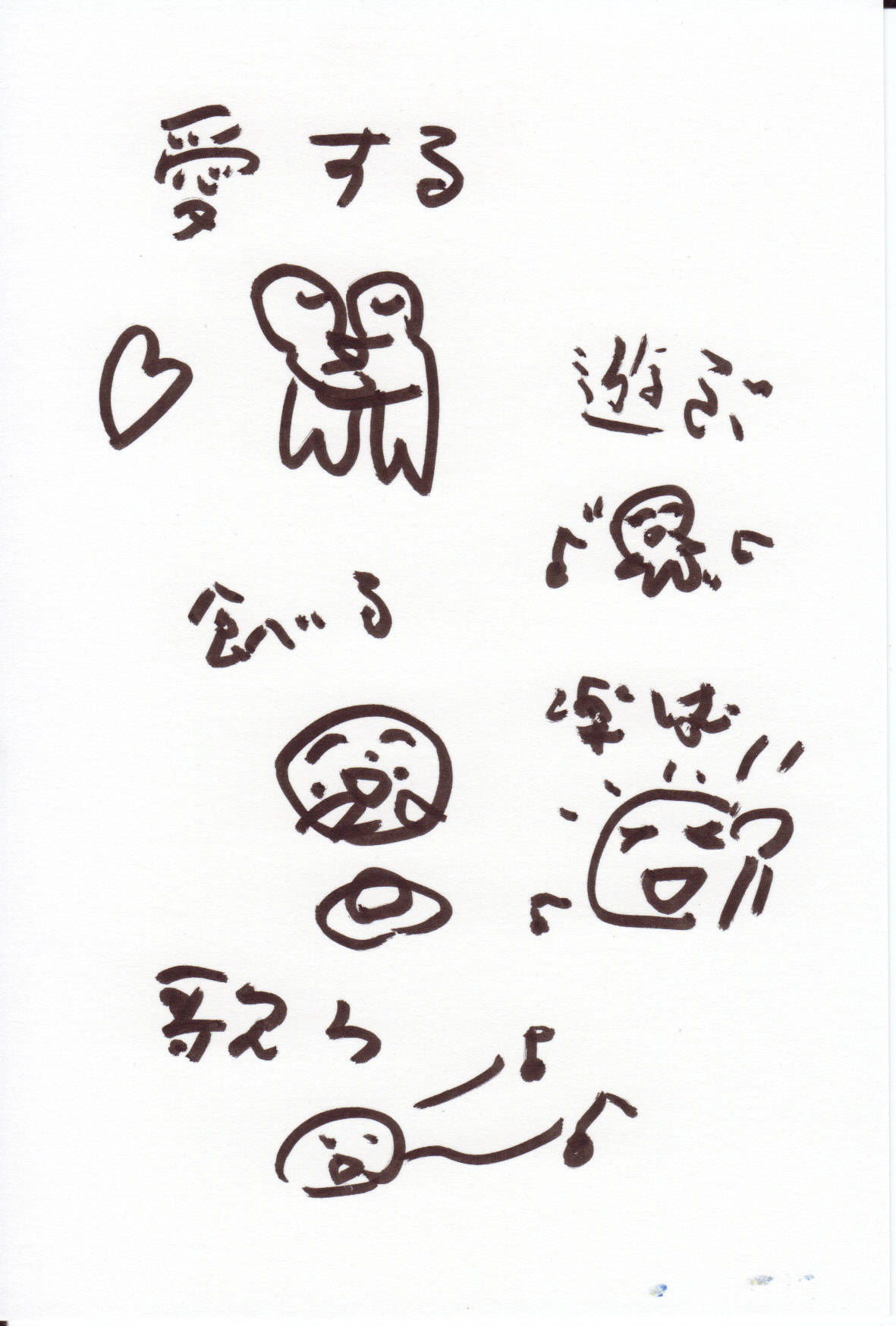 愛する、遊ぶ、食べる、楽しむ、歌う